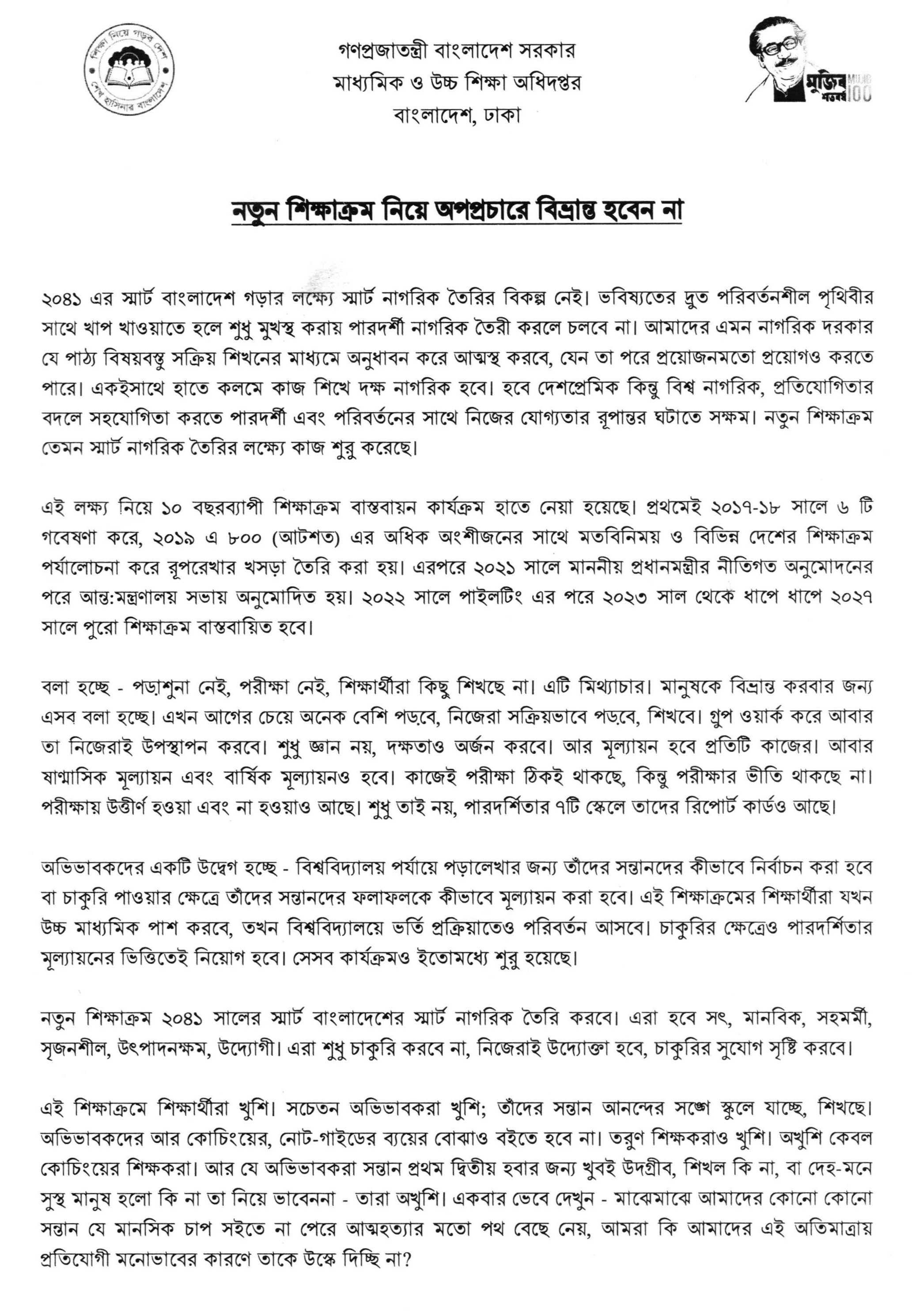 নতুন শিক্ষাক্রম নিয়ে অপপ্রচারে বিভ্রান্ত হবেন না।